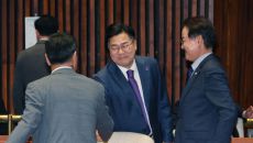 [서울=뉴스핌] 이형석 기자 = 박찬대 더불어민주당 원내대표가 28일 오후 서울 여의도 국회에서 열린 의원총회에서 의원들과 악- 2024.05.28 14:39