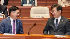 [서울=뉴스핌] 이형석 기자 = 이재명 더불어민주당 대표와 박찬대 원내대표가 28일 오후 서울 여의도 국회에서 열린 의원총회에- 2024.05.28 14:39