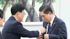 김병기 원내대표 옷 정리해주는 송언석 원내대표