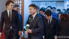 [서울=뉴스핌] 윤창빈 기자 = 송언석 국민의힘 원내대표를 비롯한 의원들이 27일 서울 여의도 국회 본청 앞에서 더불어민주당- 2026.01.27 08:40