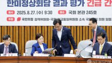 [서울=뉴스핌] 윤창빈 기자 = 김병기 더불어민주당 원내대표, 송언석 국민의힘 원내대표가 27일 오후 서울 여의도 국회에서 열- 2025.08.27 14:58