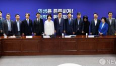 [서울=뉴스핌] 윤창빈 기자 = 김병기 더불어민주당 원내대표, 송언석 국민의힘 비상대책위원장 겸 원내대표 등 참석자들이 19일- 2025.08.19 15:22