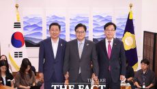 [더팩트ㅣ국회=배정한 기자] 우원식 국회의장(가운데)과 김병기 더불어민주당 원내대표(왼쪽), 송언석 국민의힘 비상대책위원장 겸- 2025.08.19 15:36