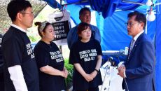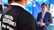 정의당 배진교 원내대표, 전세사기 피해자 농성장 방문