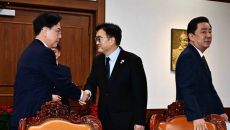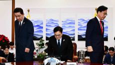[서울=뉴스핌] 윤창빈 기자 = 우원식 국회의장과 김병기 더불어민주당 원내대표, 송언석 국민의힘 원내대표가 27일 오전 서울- 2025.11.27 11:52
