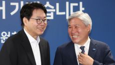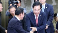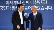 [서울=뉴스핌] 이길동 기자 = 이한주 국정기획위원회 위원장이 2일 서울 종로구 국정기획위원회에서 서왕진 조국혁신당 원내대표를- 2025.07.02 10:32