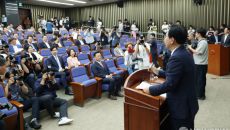 [서울=뉴스핌] 정일구 기자 = 송언석 국민의힘 원내대표가 30일 오후 서울 여의도 국회에서 열린 의원총회에서 모두발언을 하고- 2025.06.30 15:14