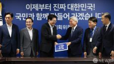 [서울=뉴스핌] 이길동 기자 = 이한주 국정기획위원회 위원장이 2일 서울 종로구 국정기획위원회에서 서왕진 조국혁신당 원내대표로- 2025.07.02 11:00