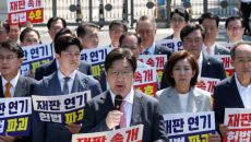 [서울=뉴스핌] 정일구 기자 = 권성동 국민의힘 원내대표가 11일 오전 서울 서초구 서울고등법원 앞에서 열린 헌법 파괴 저지를- 2025.06.11 10:56