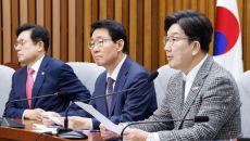[서울=뉴스핌] 윤창빈 기자 = 권성동 국민의힘 원내대표를 비롯한 당직자들이 29일 오전 서울 여의도 국회에서 열린 원내대책회- 2025.04.29 09:13