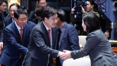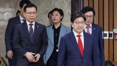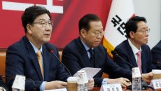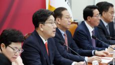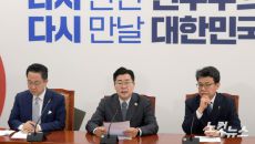 [서울=뉴스핌] 정일구 기자 = 권성동 국민의힘 원내대표가 17일 오후 서울 여의도 국회에서 열린 의원총회에서 참석 의원들과- 2025.04.17 14:17
