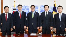 [서울=뉴스핌] 윤창빈 기자 = 우원식 국회의장과 양당 원내대표가 4일 오후 서울 여의도 국회에서 의장주재로 열린 원내대표 회- 2025.03.04 15:58