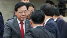[서울=뉴스핌] 윤창빈 기자 = 송언석 국민의힘 원내대표가 10일 서울 여의도 국회에서 열린 의원총회에 참석하고 있다. pan- 2025.11.10 14:30