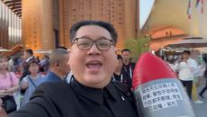 국제 정치행사 현장에서 김정은 북한 국무위원장 흉내를 내기로 유명한 중국계 정치활동가 '하워드 X'가 독재자 풍자는 변화를 위- 2025.10.20 09:54