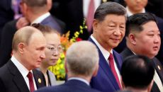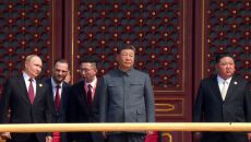 아시아투데이 홍순도 베이징 특파원 =김정은 북한 노동당 총비서와 시진핑(習近平) 중국 총서기 겸 국가주석이 블라디미르 푸틴 러- 2025.10.08 16:00