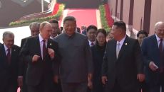 좌 김정은, 우 푸틴…북·중·러 정상 60년 만에 한 자리