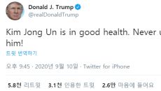 트럼프 미국 대통령이 트위터에, "김정은은 건강하다며 절대 그를 과소평가하지 말라"는 글을 올렸습니다. 트럼프 대통령에 이것- 2020.09.11 01:41