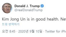 도널드 트럼프 미국 대통령이 10일(현지시간) 트위터에 "김정은은 건강하다"는 내용의 글을 올려 그 배경에 관심이 쏠리고 있다- 2020.09.10 22:54