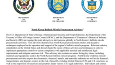 미, 북한 탄도미사일 조달 관련 전세계에 주의보 발령