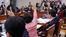 (서울=뉴스1) 신웅수 기자 = 12일 서울 여의도 국회에서 열린 법제사법위원회 전체회의에서 여야 의원들이 예산안 거수 투표를- 2025.11.12 20:30
