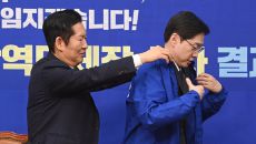 김경수 위원장에게 선거복 입혀주는 정청래 대표
