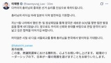 이재명 대통령이 다카이치 사나에 일본 총리의 조기 중의원 선거 승리에 축하 메시지를 남겼다. 이 대통령은 9일 X(구 트위터)- 2026.02.09 14:17