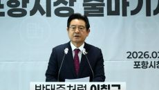 (포항=연합뉴스) 손대성 기자 = 이칠구(66) 경북도의원은 11일 포항시청에서 기자회견을 열고 포항시장 선거 출마와 동시에- 2026.02.11 10:18