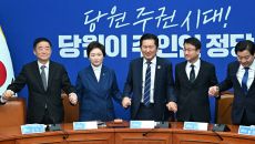'합당 중단'에 손잡은 민주당 지도부 "지방선거 위해 총단결"