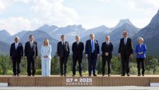▲ 16일(현지시간) 캐나다 캐내내스키스에서 열린 주요 7개국(G7) 정상회의에 참석한 주요국 정상들. 왼쪽부터 에마뉘엘 마크- 2025.06.17 14:10