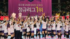 ▲ 트로피 들어 올리는 흥국생명 한국배구연맹이 대전 충무체육관에서 열린 프로배구 도드람 2024-2025 V리그 정관장과 흥국- 2025.03.01 20:42
