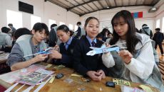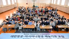 [헤럴드pic] 몽골 학생들과 모형 비행기 조립하는 대한항공-아시아나항공 직원들