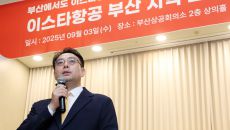 이경민 이스타항공 커머셜본부장이 3일 부산 상공회의소에서 '부산에서도 이스타항공!' 노선 설명회를 갖고 있다. 이 본부장은 부- 2025.09.03 16:03