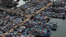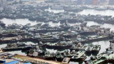 [퇴근길 한 컷]제8호 태풍 ‘바비’ 북상…부산항에 대피한 선박들