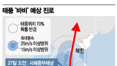 8호 태풍 바비, 서해로 북상…제주 이어 27일 오전 서울 최근접