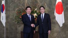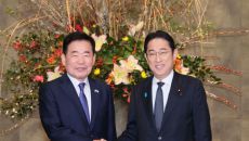 [the300] 일본을 공식 방문한 김진표 국회의장이 27일 오전 기시다 후미오 일본 내각총리대신과 만나 "내년 한미일 3국이- 2023.12.27 15:00
