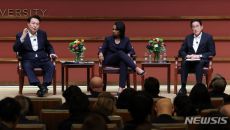 윤석열 대통령, 기시다 일본 총리와 스탠퍼드대학교서 좌담 [뉴시스Pic]