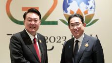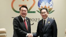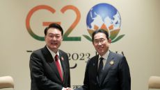 尹 "한일중 정상회의 잘 진행하자" 기시다 "적극 호응"...G20서 한일 정상회담