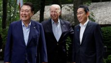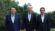[서울=뉴시스] 김승민 기자 = 한미일 정상회의를 마치고 20일 귀국한 윤석열 대통령은 조 바이든 미국 대통령, 기시다 후미오- 2023.08.20 01:41