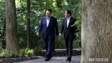 [캠프 데이비드=뉴시스] 박미영 기자 = 윤석열 대통령과 기시다 후미오 일본 총리는 18일(현지시간) 미국 메릴랜드주 캠프 데- 2023.08.19 04:56