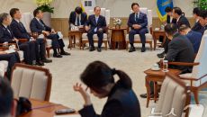 [서울=뉴스핌] 이재명 대통령이 30일 서울 용산 대통령실 청사에서 일한의원연맹 회장인 스가 요시히데 전 일본 총리를 접견하며- 2025.07.31 00:07