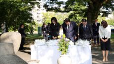 기시다, 한국인원폭희생자 위령비 헌화에 "한일관계에 매우 중요"