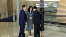 일본 총리 부부와 인사하는 윤석열 대통령 내외