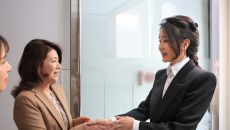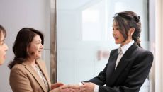 기시다 유코 여사와 인사 나누는 김건희 여사