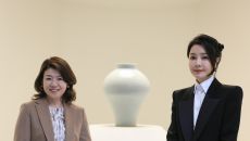 기시다 유코 여사와 '조선의 백자, 군자지향' 전시 찾은 김건희 여사