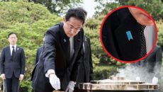 한국 온 기시다, 내내 가슴에 달린 ‘푸른 리본’ 의미는…“북한이 일본인 납치”