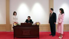 [서울=뉴스핌] 기시다 후미오 일본 총리가 7일 용산 대통령실 청사에서 작성한 방명록. [사진=대통령실] 2023.05.07- 2023.05.08 07:21