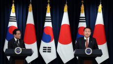 [서울=뉴스핌] 윤석열 대통령과 기시다 후미오 일본 총리가 7일 용산 대통령실 청사에서 공동 기자회견을 하고 있다. [사진=대- 2023.05.08 07:34