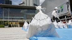 일본 총리 관저 앞마당에 후쿠시마 원전사고 오염 흙 깔아