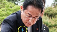 현충원 참배한 기시다 옷깃, 의미심장한 ‘푸른 리본 배지’