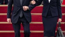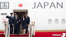 팔짱끼고 트랩 내려오는 기시다 日 총리 내외